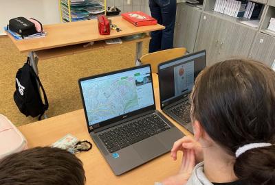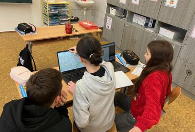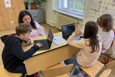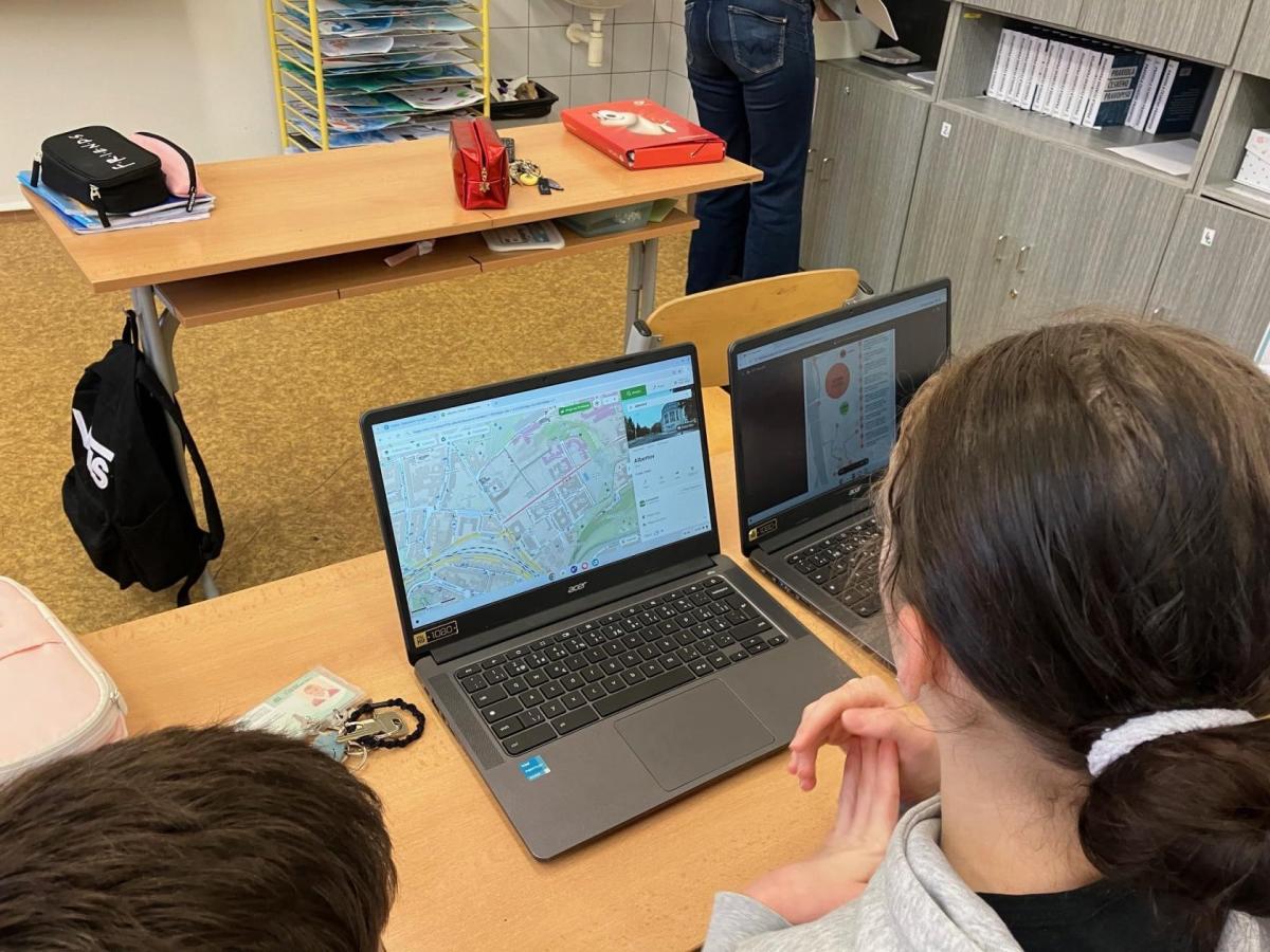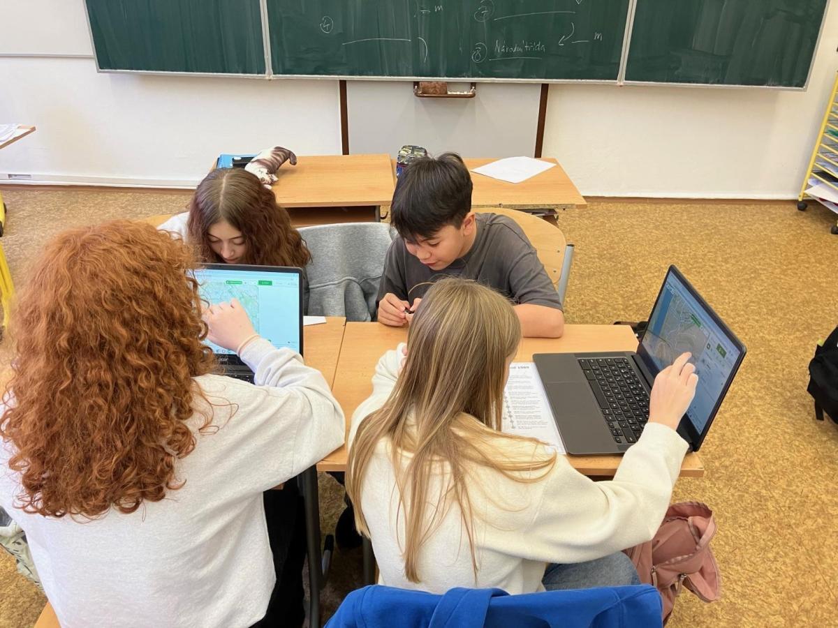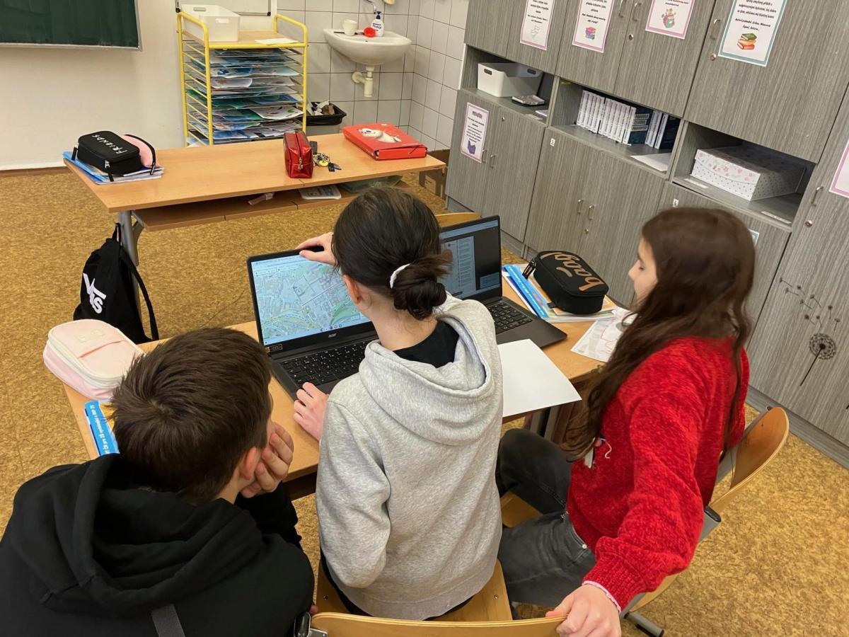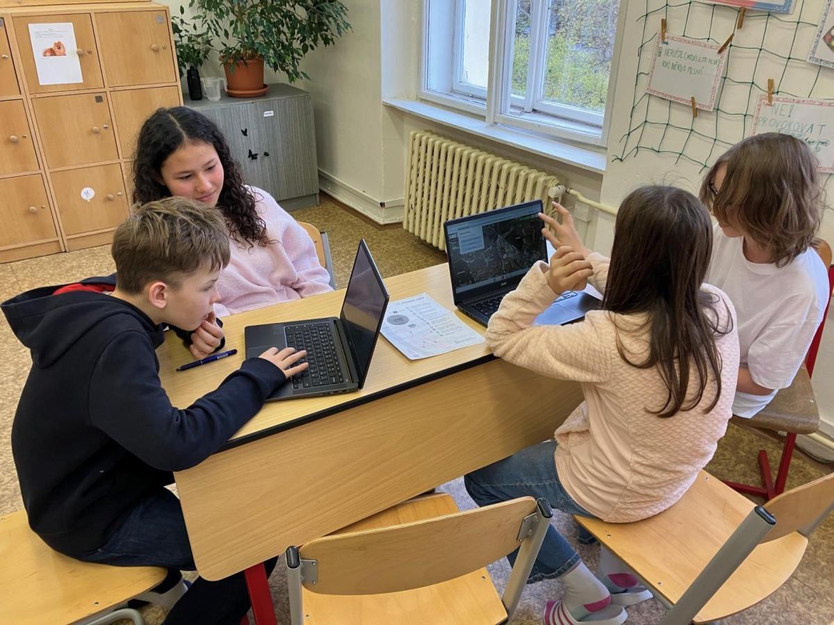 Projekt pokračoval v hodině matematiky. Žáci pracovali ve skupinách a podle mapy, kterou vytvořili v zeměpise, hledali stanoviště, kterými, tenkrát demonstranti prošli. Pomocí aplikace Mapy.cz vyhledávali vzdálenost mezi jednotlivými místy. Údaje museli převést na km a následně spočítat celkovou délku trasy. Toto se nám velmi hodilo, probíráme nyní desetinná čísla.