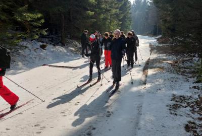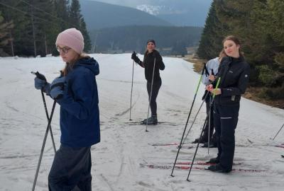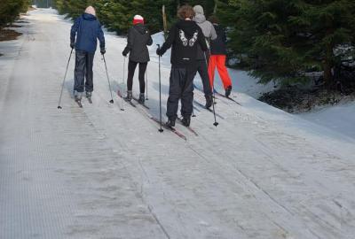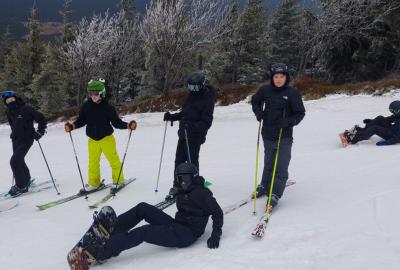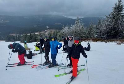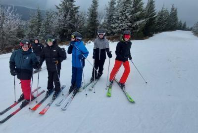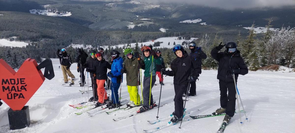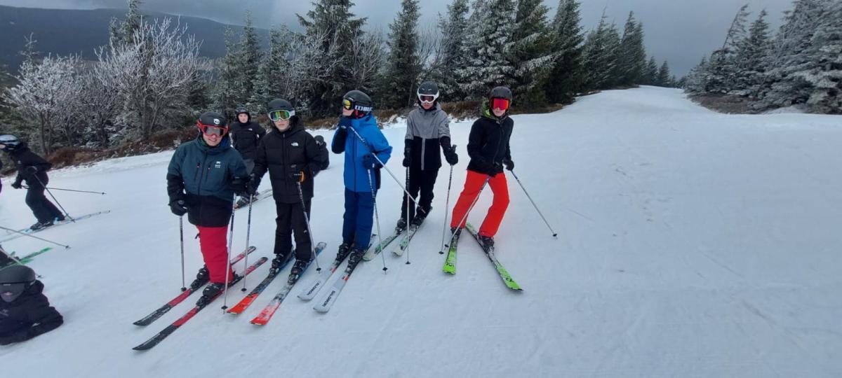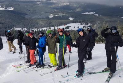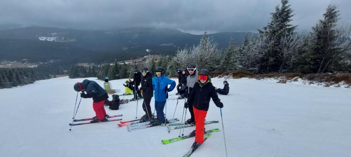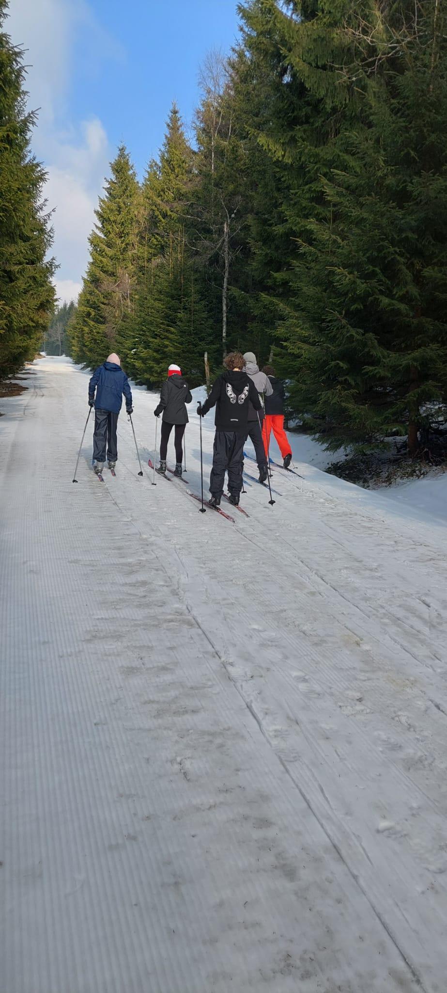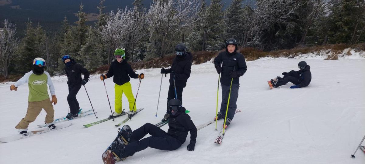 Přes noc nám trochu nasněžilo ❄️, takže nás ráno čekalo milé překvapení v podobě zasněženého okolí. Podmínky na lyžování byly ideální, a tak jsme si ho naplno užili – odpoledne dokonce i se sluníčkem ☀️