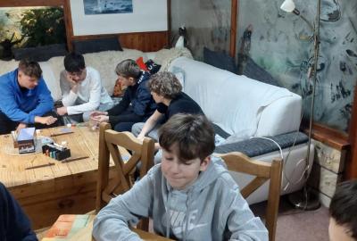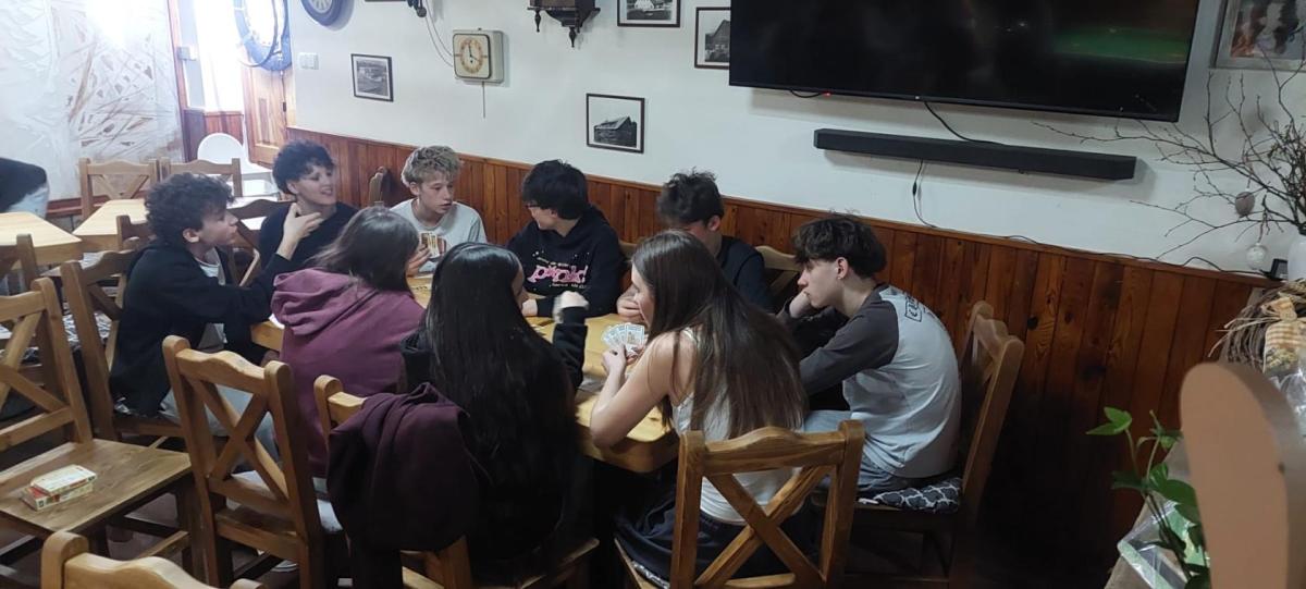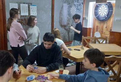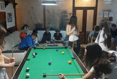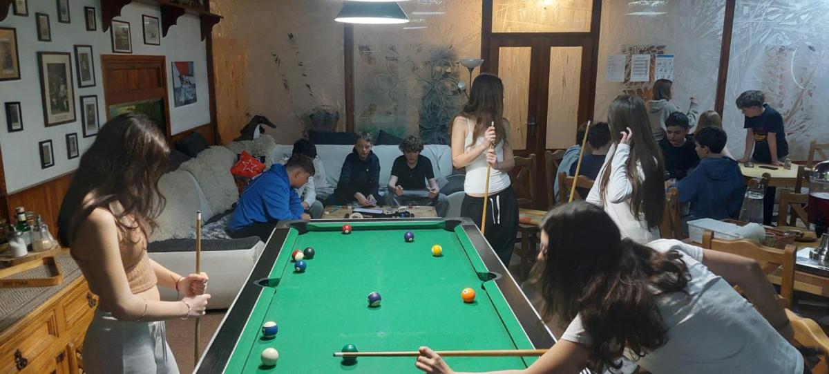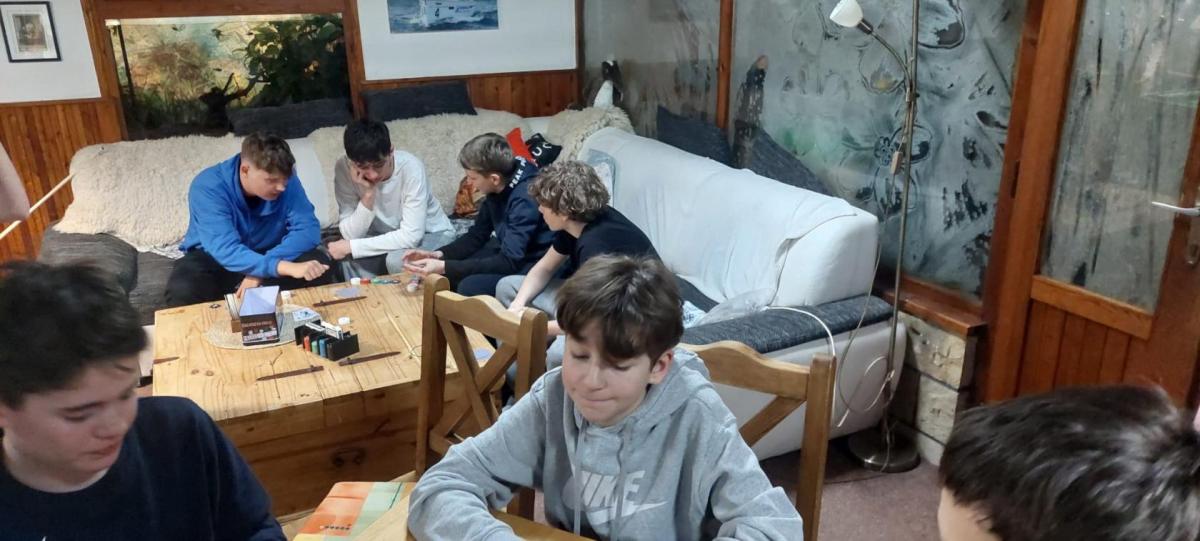 Večer patřil aktivitám zaměřeným na prevenci šikany a dalším kooperativním hrám. Ve volném čase děti hrají kulečník, šipky a další společenské hry ?