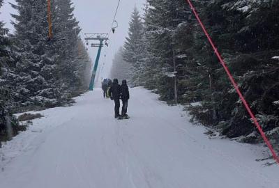 V pondělí jsme si užili první lyžovačku ⛷️ I když okolní louky zůstávaly zelené, na sjezdovce byl dostatek sněhu – a navíc jsme ji měli jen pro sebe ?