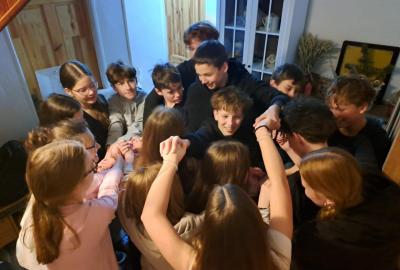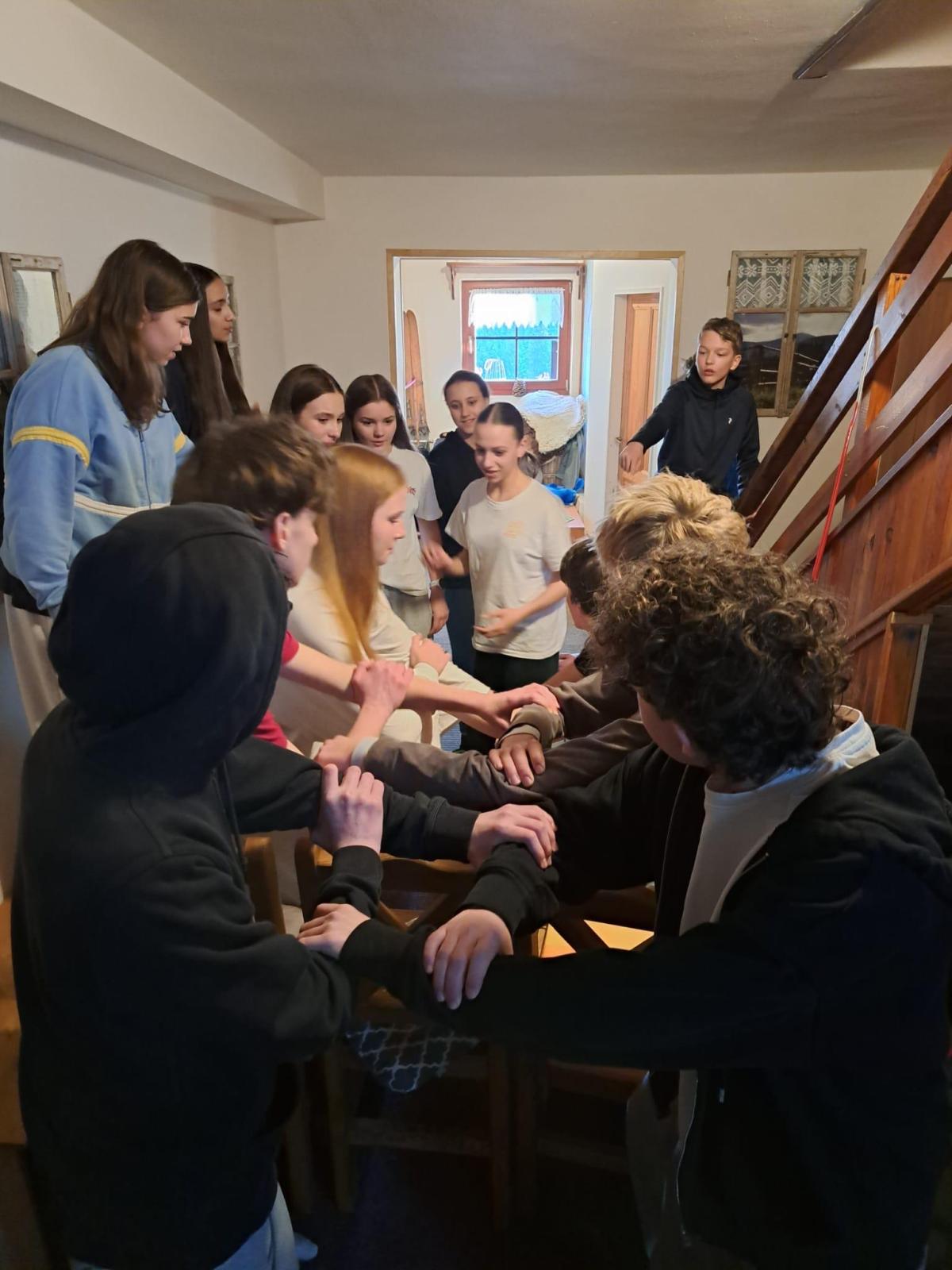 Večer jsme se věnovali aktivitám zaměřeným na zvládání zlosti a hrám rozvíjejícím spolupráci.