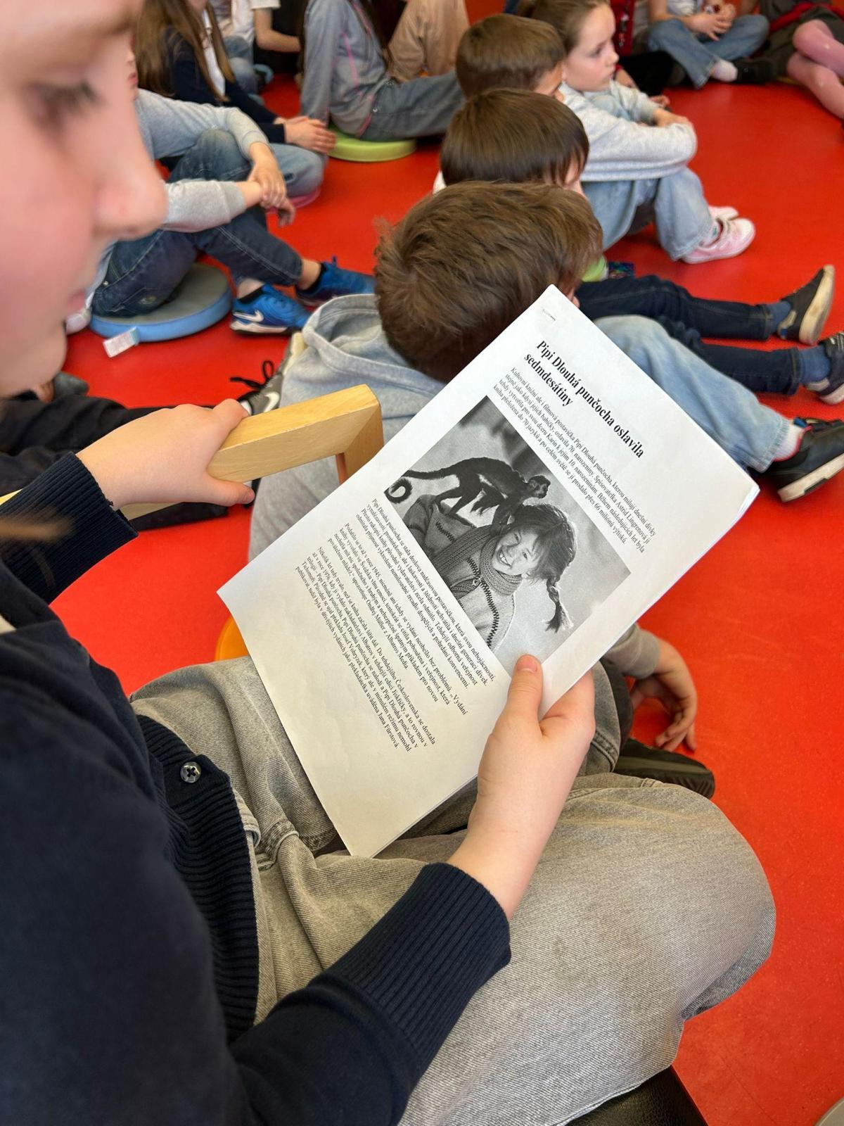 Paní knihovnice nás seznamila se životem a dílem spisovatelky Astrid Lindgrenové. Poslechli jsme si úryvek z knihy Pipi Dlouhá punčocha.